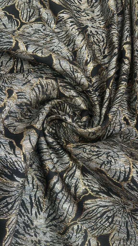Gold and black floral metallic brocade