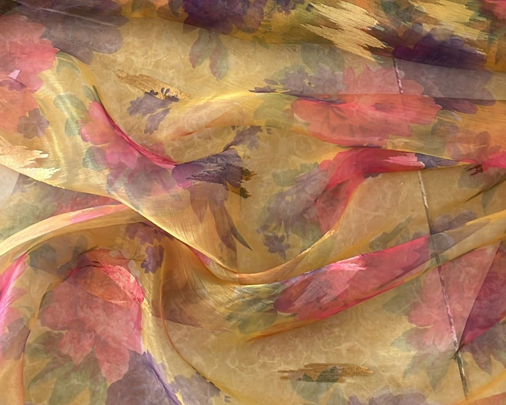 Mustard pink and purple floral burnout chiffon organza