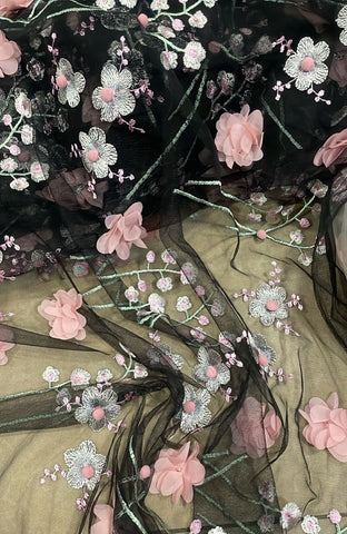 Plant embroided 3D tulle