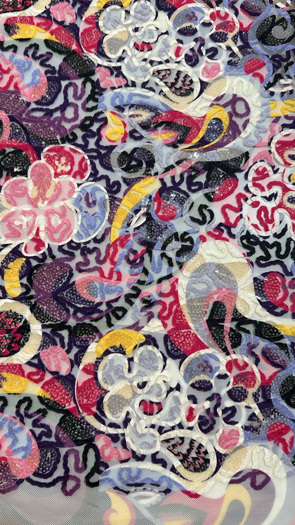 Purple abstract sequin embroidered tulle lace